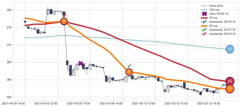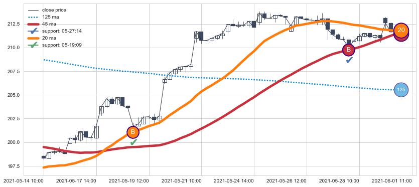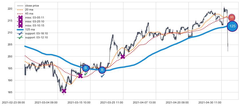 ⚂ 2021-05-04 09:00:00-小时均线向下破位,2021-05-20 12:00:00-小时重新上穿突破均线,均线支撑再次生效