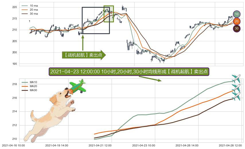 ⚀ 2021-04-20 14:00:00小时-2021-04-28 10:00:00小时显现 10小时-20小时-30小时均线 【战机起航】卖出点 看空信号,后市看跌,卖出