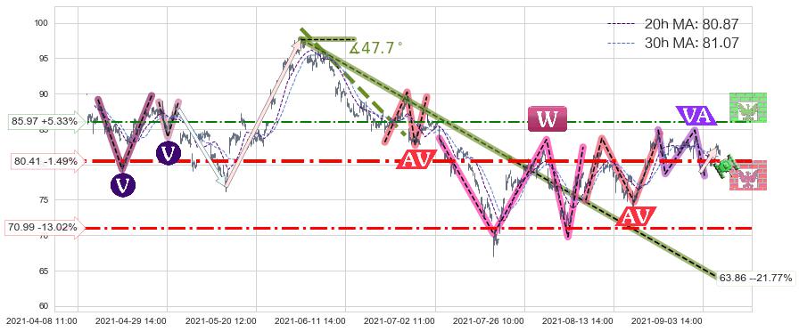 ♘ 支撑价格位80.41,可信任强度83.35%,距离最后交易2021-09-09 14:00形成的收盘价格81.62相差 -1.49%
