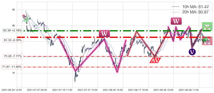 ♘ 阻力价格位83.38,可信任强度95.24%,距离最后交易2021-09-09 14:00形成的收盘价格81.62相差 +2.16%