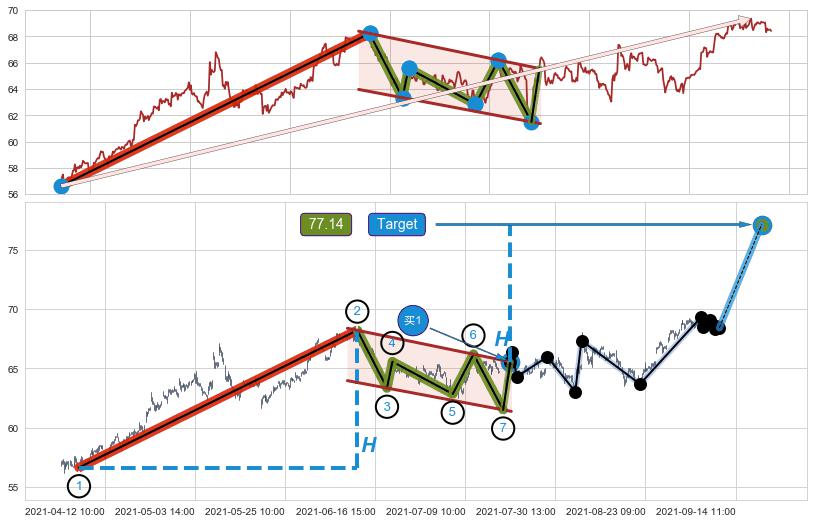 ➣ AI预测: 假定反转启动后, 第❶目标位置(10-28:10, 67.62)