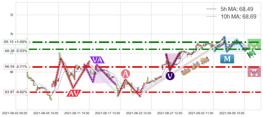 ♘ 阻力价格位69.15,可信任强度92.97%,距离最后交易2021-09-09 14:00形成的收盘价格68.40相差 +1.09%