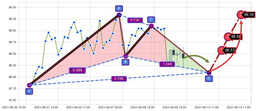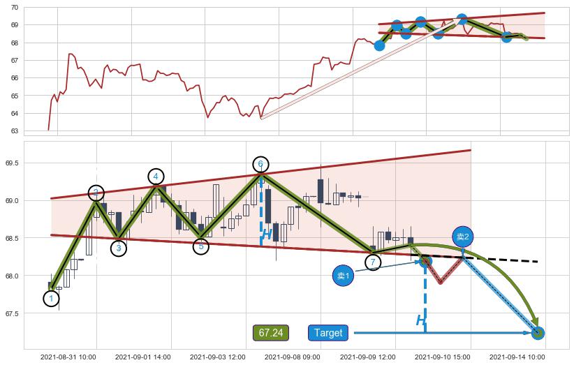 ➣ 【仅预测突破】最后价格:68.40与预测突破价格:68.19→【空间临近】后续最小【反转】第一目标价格→(09-14:10: 67.24 )