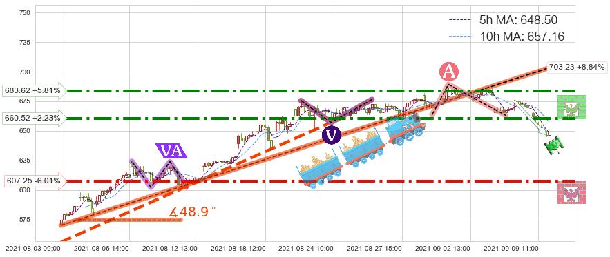 ♘ 阻力价格位683.62,可信任强度71.92%,距离最后交易2021-09-09 15:00形成的收盘价格646.11相差 +5.81%