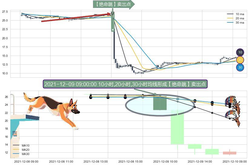 ⚀ 2021-12-09 09:00:00小时显现 10小时-20小时-30小时均线 【绝命跳】卖出点 看空信号,后市看跌,卖出
