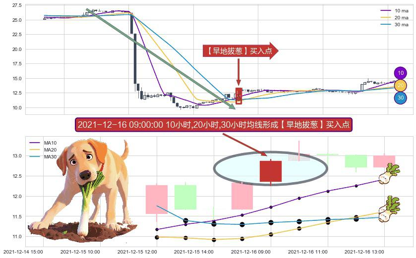 ⚀ 2021-12-16 09:00:00小时显现 10小时-20小时-30小时均线 【旱地拔葱】买入点 看多信号,后市看涨,买入