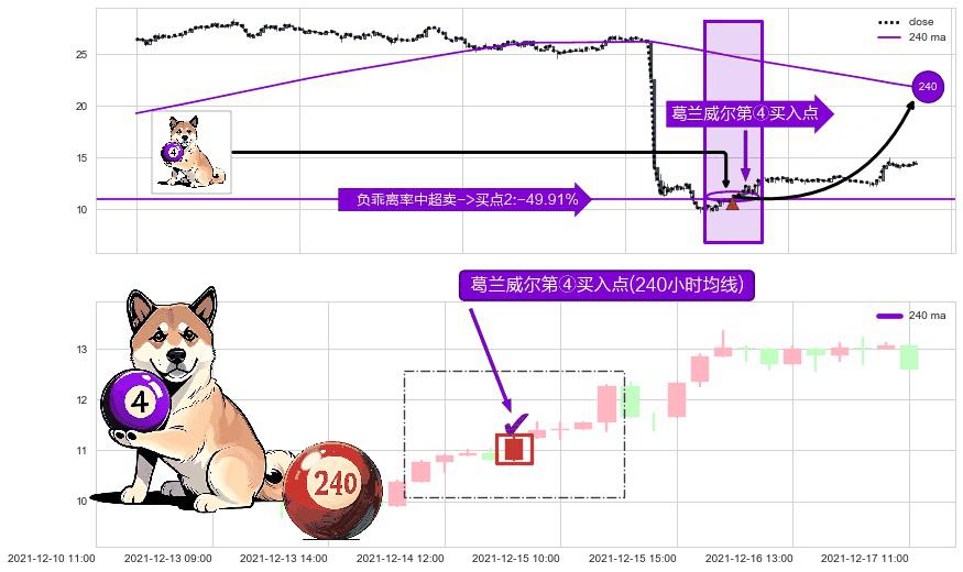 ⚀ 2021-12-14 15:00:00-小时显现 葛兰威尔均线 240小时均线 第④买入点 下降趋势均值回复的短线反弹信号,后市看涨,买进信号