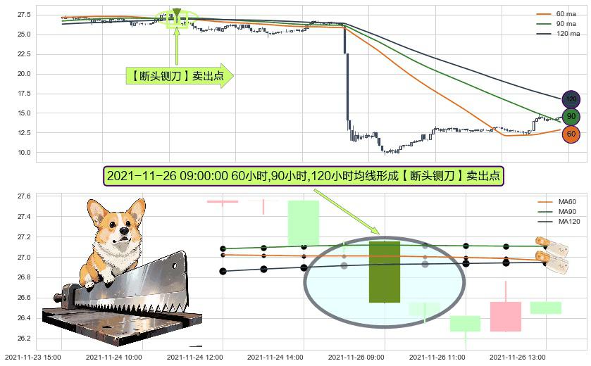 ⚀ 2021-11-26 09:00:00小时显现 60小时-90小时-120小时均线 【断头铡刀】卖出点 看空信号,后市看跌,卖出