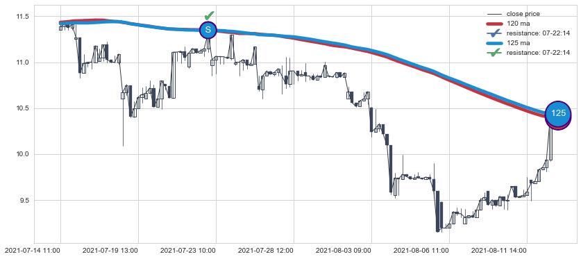 ⚃ 在破位点附近ma走势明显平稳迹象,稍后的走势中ma下垂迹象也出现,信号【可信度中等偏上】