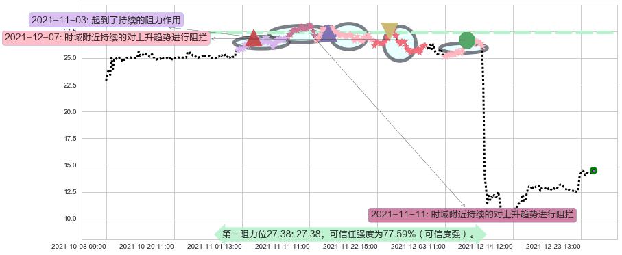 ♘ 阻力价格位27.38,可信任强度77.59%,距离最后交易2021-12-27 15:00形成的收盘价格14.53相差 +88.47%