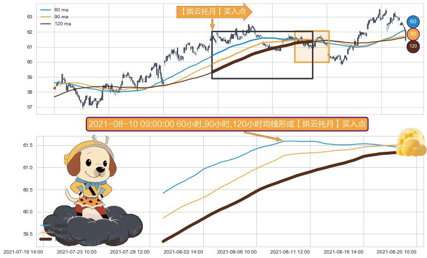 ⚀ 2021-07-29 11:00:00小时-2021-08-19 12:00:00小时显现 60小时-90小时-120小时均线 【烘云托月】买入点 看多信号,后市看涨,买入