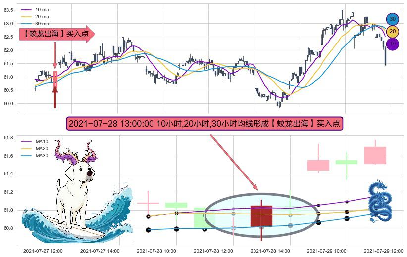 ⚀ 2021-07-28 13:00:00小时显现 10小时-20小时-30小时均线 【蛟龙出海】买入点 看多信号,后市看涨,买入