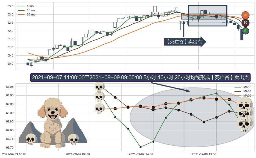 ⚀ 2021-09-07 12:00:00-小时至2021-09-09 09:00:00-小时显现 5小时-10小时-20小时均线 【死亡谷】卖出点 看空信号,后市看跌,卖出