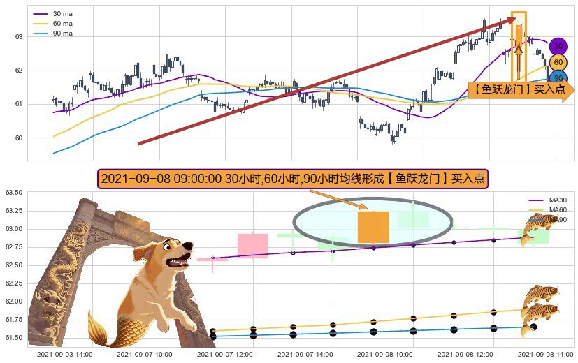 ⚀ 2021-09-08 09:00:00小时显现 30小时-60小时-90小时均线 【鱼跃龙门】买入点 看多信号,后市看涨,买入