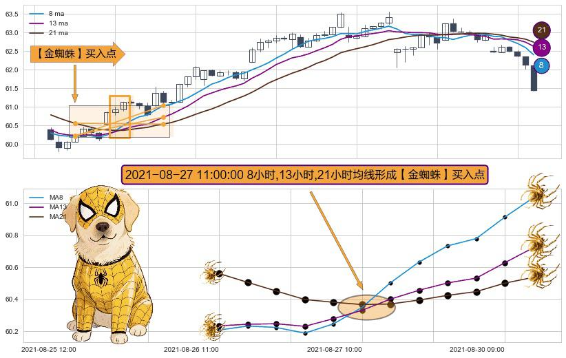 ⚀ 2021-08-27 11:00:00小时显现 8小时-13小时-21小时均线 【金蜘蛛】买入点 看多信号,后市看涨,买入