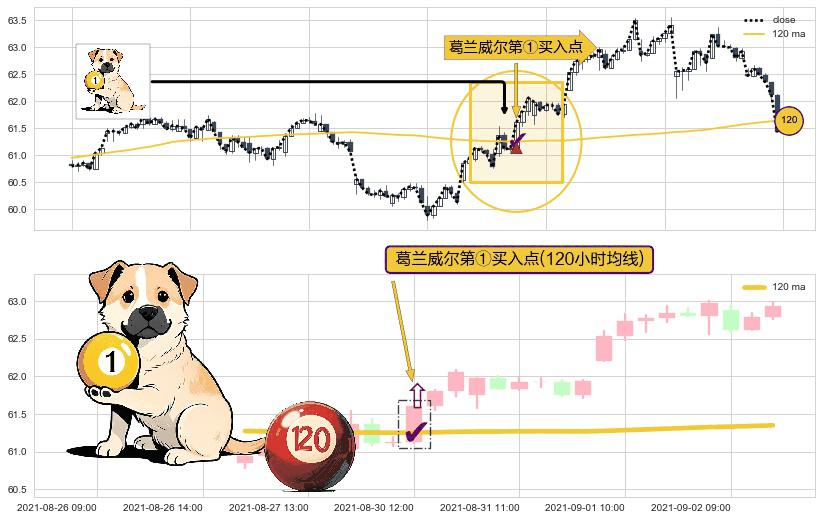 ⚀ 2021-08-30 12:00:00-小时显现 葛兰威尔均线 120小时均线 第买①入点 走势反转见底信号,后市看涨,买进信号
