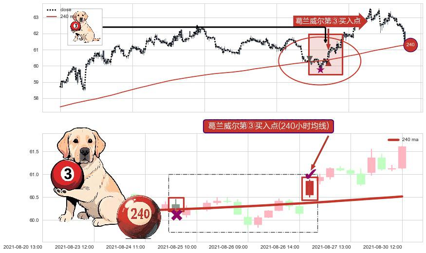 ⚀ 2021-08-27 09:00:00-小时显现 葛兰威尔均线 240小时均线 第③买入点 上升趋势的中继信号,后市看涨,买进信号