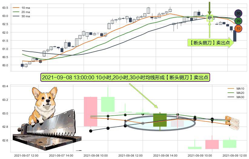⚀ 2021-09-08 13:00:00小时显现 10小时-20小时-30小时均线 【断头铡刀】卖出点 看空信号,后市看跌,卖出
