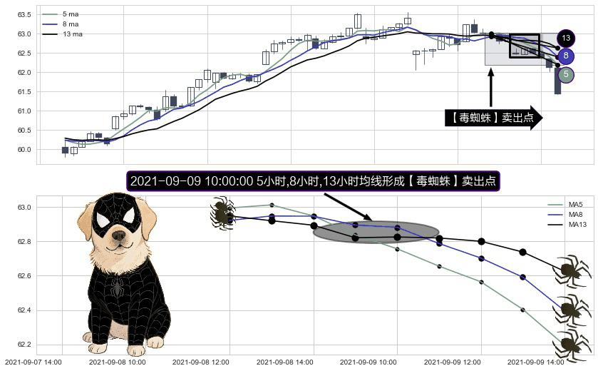 ⚀ 2021-09-09 10:00:00小时显现 5小时-8小时-13小时均线 【毒蜘蛛】卖出点 看空信号,后市看跌,卖出