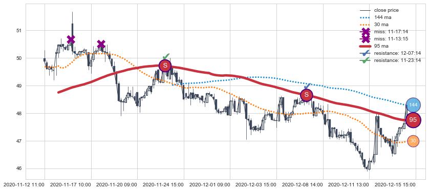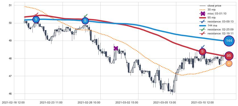 ➢ 最优均线组合共正确确认支撑阻力信号14处,正确确认率 58.33%