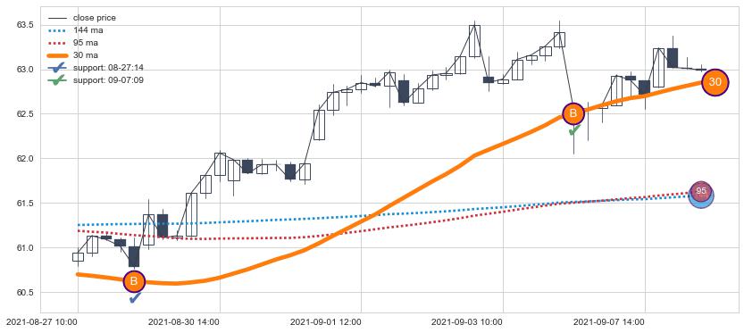 ⚂ 2021-08-24 14:00:00-小时均线向下破位,2021-08-27 09:00:00-小时重新上穿突破均线,均线支撑再次生效