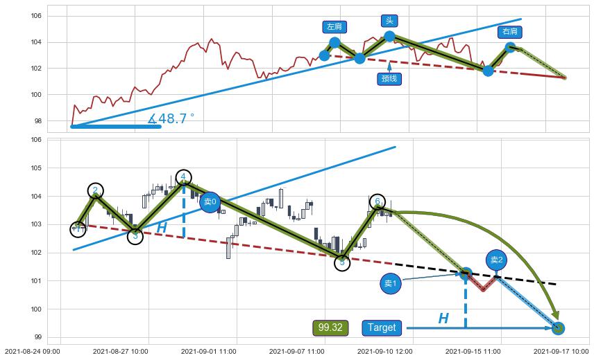➣ 【未确认突破,预测即将形成突破】头肩顶起点:08-23:14, 预测突破点:09-14:10,形态共94交易小时