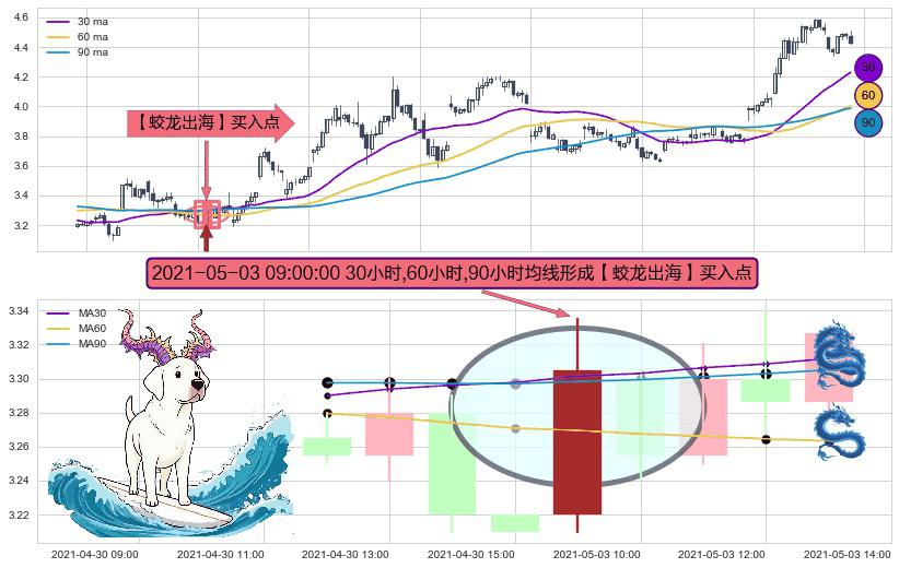 ⚀ 2021-05-03 09:00:00小时显现 30小时-60小时-90小时均线 【蛟龙出海】买入点 看多信号,后市看涨,买入