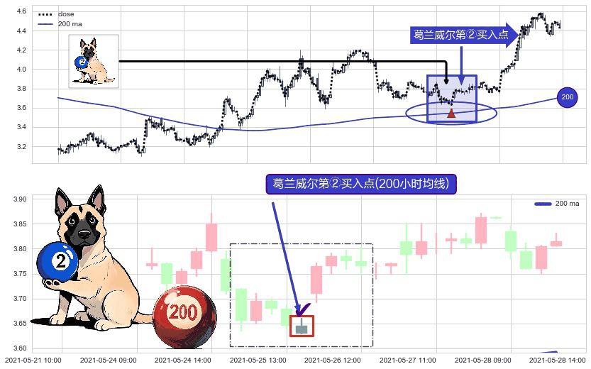 ⚀ 2021-05-25 14:00:00-小时显现 葛兰威尔均线 200小时均线 第②买入点 上升趋势的中继信号,后市看涨,买进信号