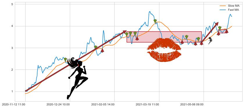 05-21 09:00至06-01 09:00 慢线与快线多次接触,存在上下穿越,有缠绕