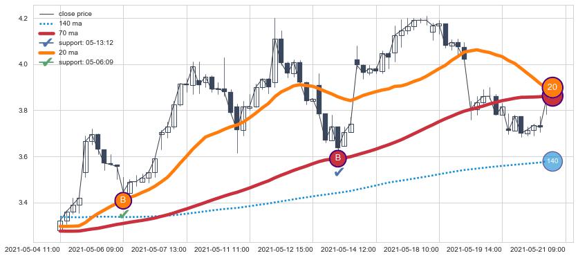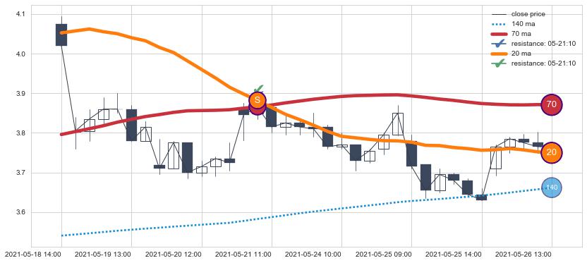⚂ 2021-05-03 09:00:00小时突然冒出一根大阳线,一下子顶穿三条均线且收盘价收在各条均线之上