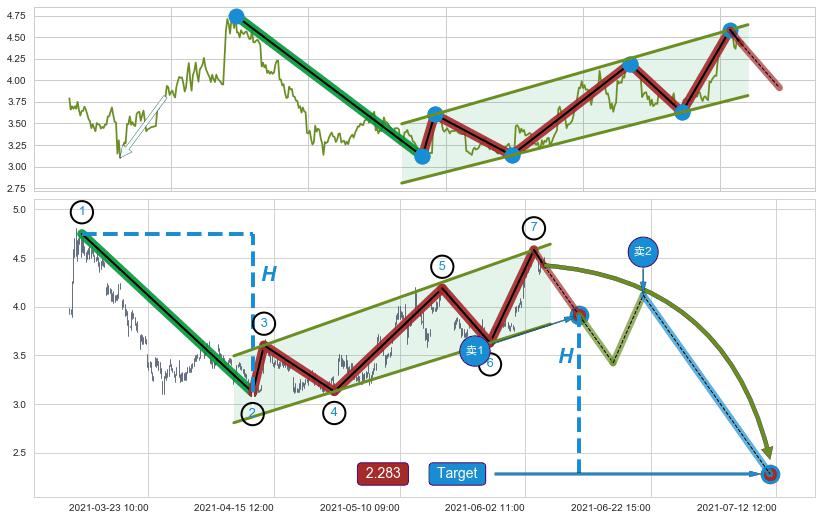 ➣ 最小中继整理跌幅→𝐇: 1.6300 (𝐇旗杆的长度:旗杆起点→顶点)