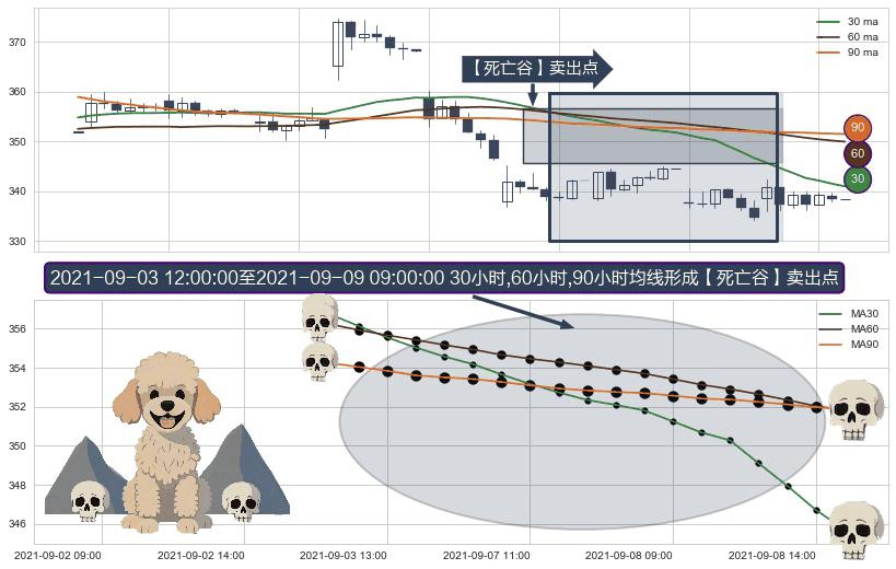 ⚀ 2021-09-03 13:00:00-小时至2021-09-09 09:00:00-小时显现 30小时-60小时-90小时均线 【死亡谷】卖出点 看空信号,后市看跌,卖出