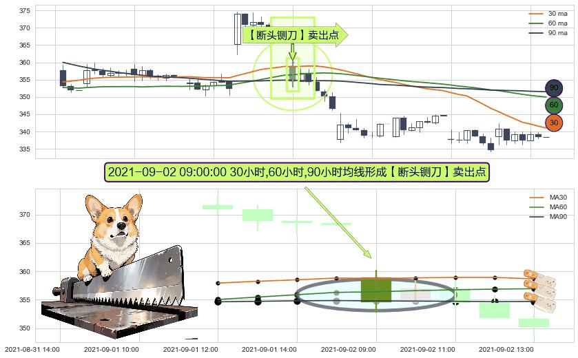⚀ 2021-09-02 09:00:00小时显现 30小时-60小时-90小时均线 【断头铡刀】卖出点 看空信号,后市看跌,卖出