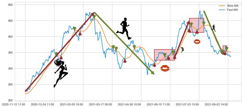 05-18 10:00至06-17 11:00 慢线与快线多次接触,存在上下穿越,有缠绕