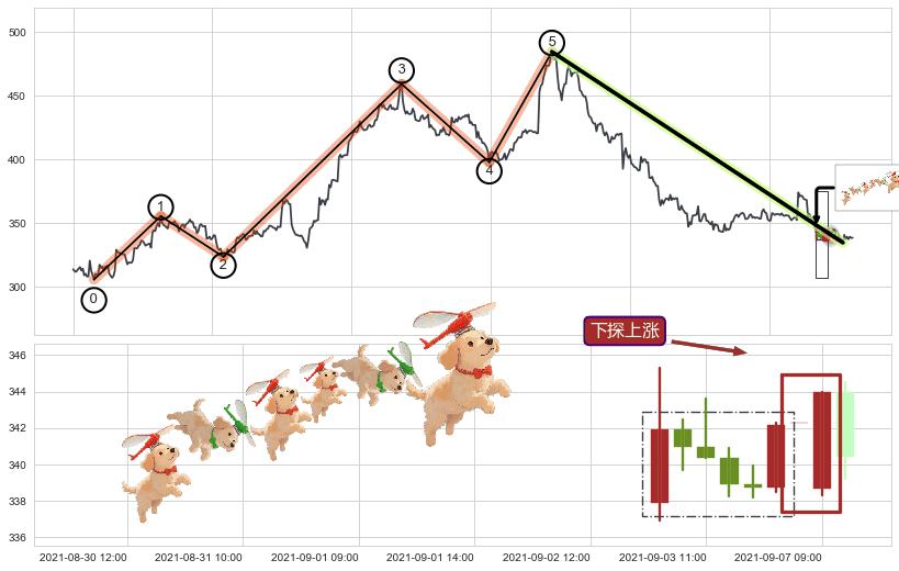 ➣ 高点影线(09-08:12: 340.68 )→回踩→第二根k线高点(09-08:09: 340.57 )