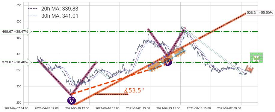 ♘ 阻力价格位468.67,可信任强度56.13%,距离最后交易2021-09-09 15:00形成的收盘价格338.46相差 +38.47%