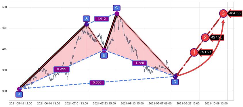 ➣ BC回撤位置在AB的141.2%,符合形态要求