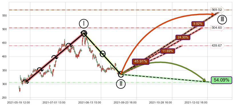 ➢ 循环浪继续向上【最高】位置(12-17:10, 569.52),匹配聚类样本比例21.61%, 可能性概率9.92%