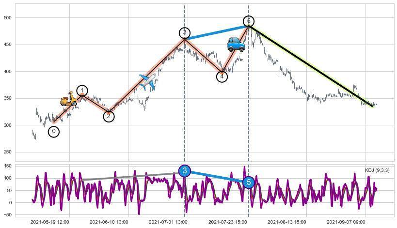 从2021-05-25 09:00至2021-06-03 14:00,共包含46个小时,阶段股价下跌-9.24%,阶段股价变动位移路程比: 1 : 3
