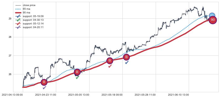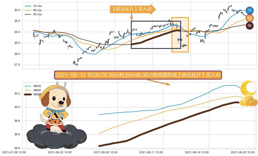 ⚀ 2021-08-04 14:00:00小时-2021-08-19 12:00:00小时显现 30小时-60小时-90小时均线 【烘云托月】买入点 看多信号,后市看涨,买入