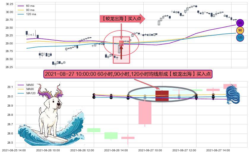 ⚀ 2021-08-27 10:00:00小时显现 60小时-90小时-120小时均线 【蛟龙出海】买入点 看多信号,后市看涨,买入
