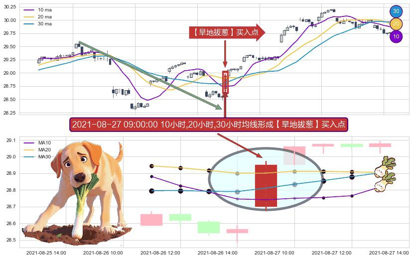 ⚀ 2021-08-27 09:00:00小时显现 10小时-20小时-30小时均线 【旱地拔葱】买入点 看多信号,后市看涨,买入