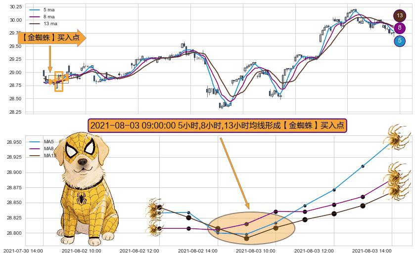 ⚀ 2021-08-03 09:00:00小时显现 5小时-8小时-13小时均线 【金蜘蛛】买入点 看多信号,后市看涨,买入