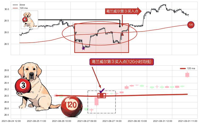 ⚀ 2021-08-27 10:00:00-小时显现 葛兰威尔均线 120小时均线 第③买入点 上升趋势的中继信号,后市看涨,买进信号