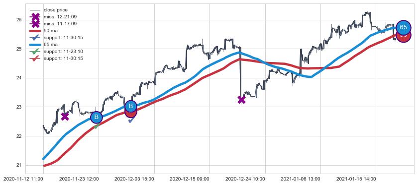 ⚅ 买点向上突破均线后,价格走势很纠结,不断在均线周围试探,有再次下探破位均线的可能