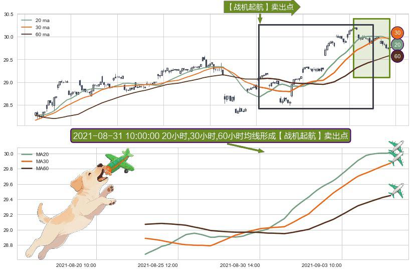 ⚀ 2021-08-24 10:00:00小时-2021-09-08 10:00:00小时显现 20小时-30小时-60小时均线 【战机起航】卖出点 看空信号,后市看跌,卖出