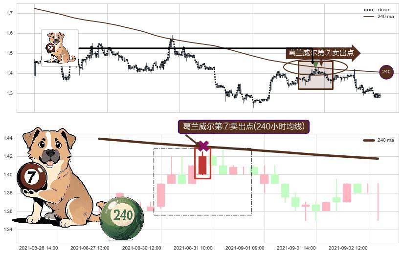 形态多维评估: ⚀ 2021-08-31 09:00:00-小时显现 葛兰威尔均线 240小时均线 第⑦卖出点 下降趋势的中继信号,后市看跌,卖出信号