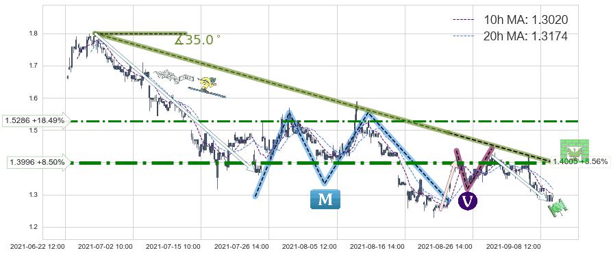 ♘ 阻力价格位1.3996,可信任强度86.93%,距离最后交易2021-09-09 14:00形成的收盘价格1.2900相差 +8.50%