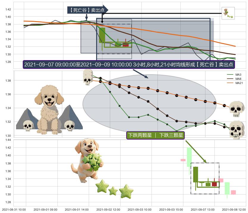 从2021-09-01 14:00至2021-09-03 11:00,共包含12个小时,阶段股价上涨2.21%,阶段股价变动位移路程比: 1 : 2
