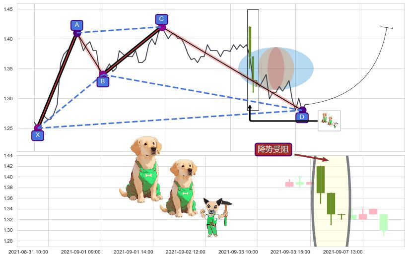 ➣ D点拟合预测价格1.4765,距离最后交易收盘价格1.2900相差 +14.46%